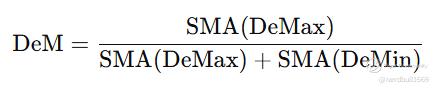 where DeMax = difference when current high > previous high (else zero), DeMin = difference when current low < previous low (else zero).