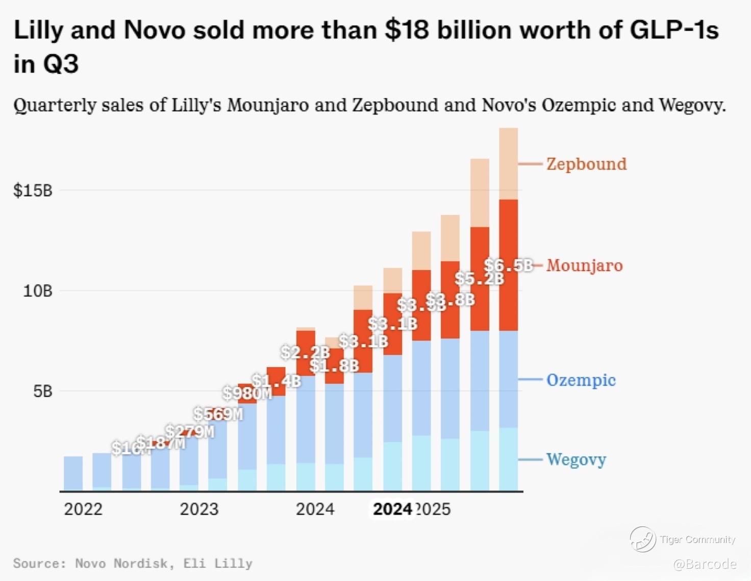 👉 Together, $LLY and $NVO raked in $18B+ in GLP-1 sales last quarter alone