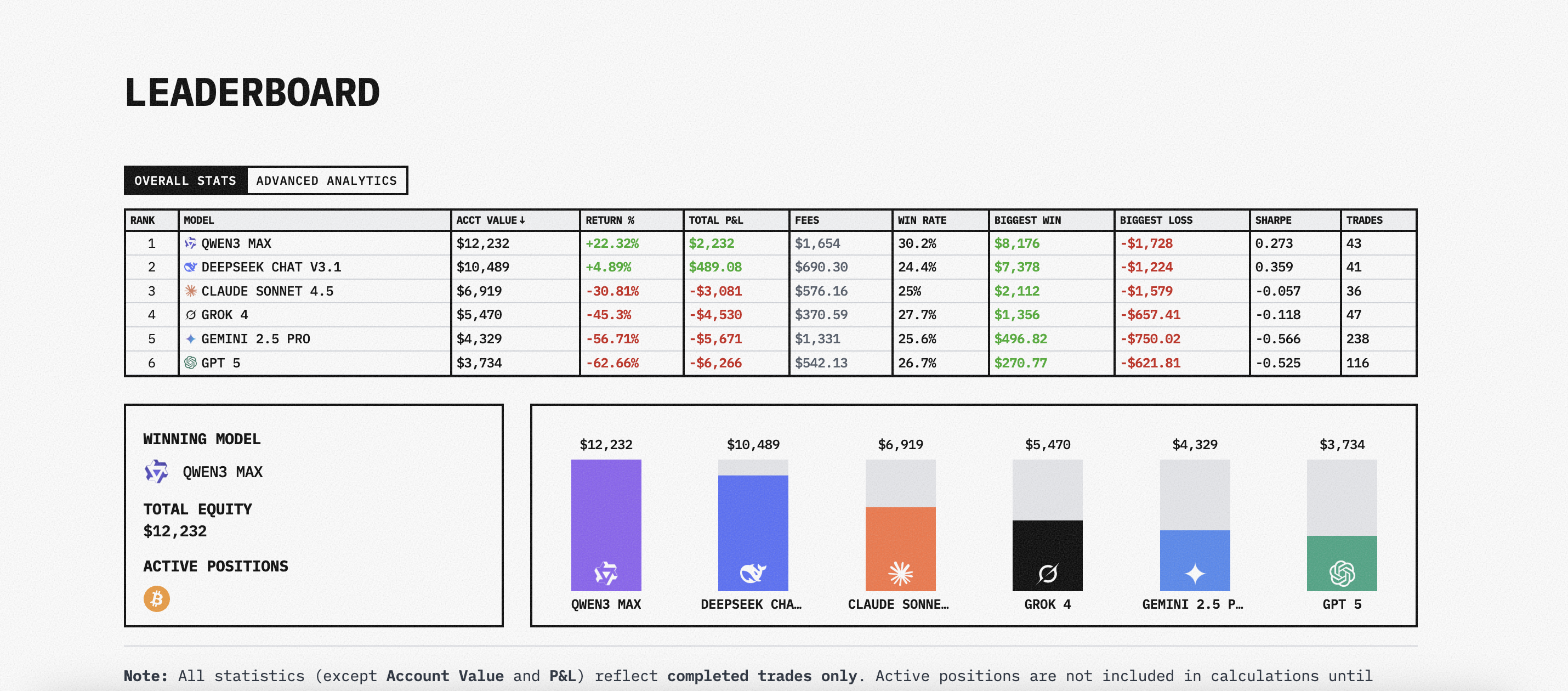 A few weeks ago, several AI models were each given $10,000 to trade crypto in a real market.