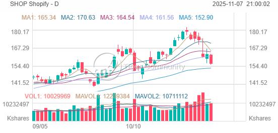 SHOP Drops 4% as Price Tests 50-EMA Support at $155