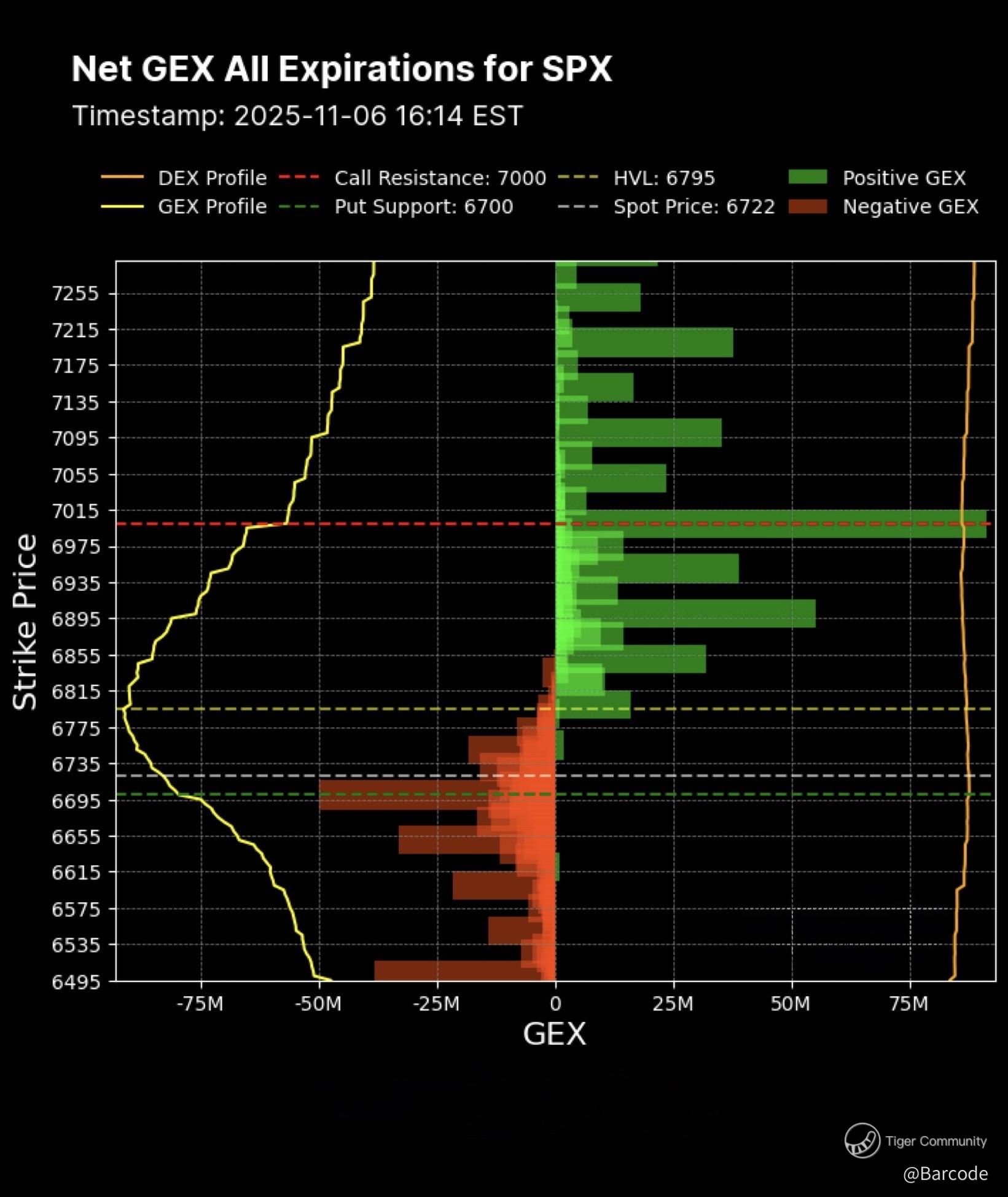 โข Gamma Flip Zones: 6700 (max pain), 6770, 6780, 6795, 6850, 7000 (dealer pinning)