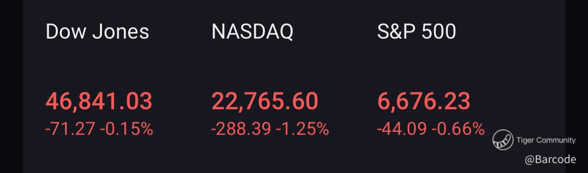 $S&P 500(.SPX)$ $SPDR S&P 500 ETF Trust(SPY)$ $NVIDIA(NVDA)$ Three decades parsing order flow reveal this rhythm. The S&P 500 sits at 6,676.23 (-0.66 %), Nasdaq at 22,765.60 (-1.25 %), and Dow at 46,841.03 (-0.15 %). Not capitulation; more like terminal velocity in a fading momentum vector.