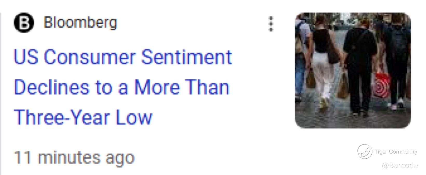 US consumers feel squeezed from โmultiple directions,โ per the University of Michigan survey.