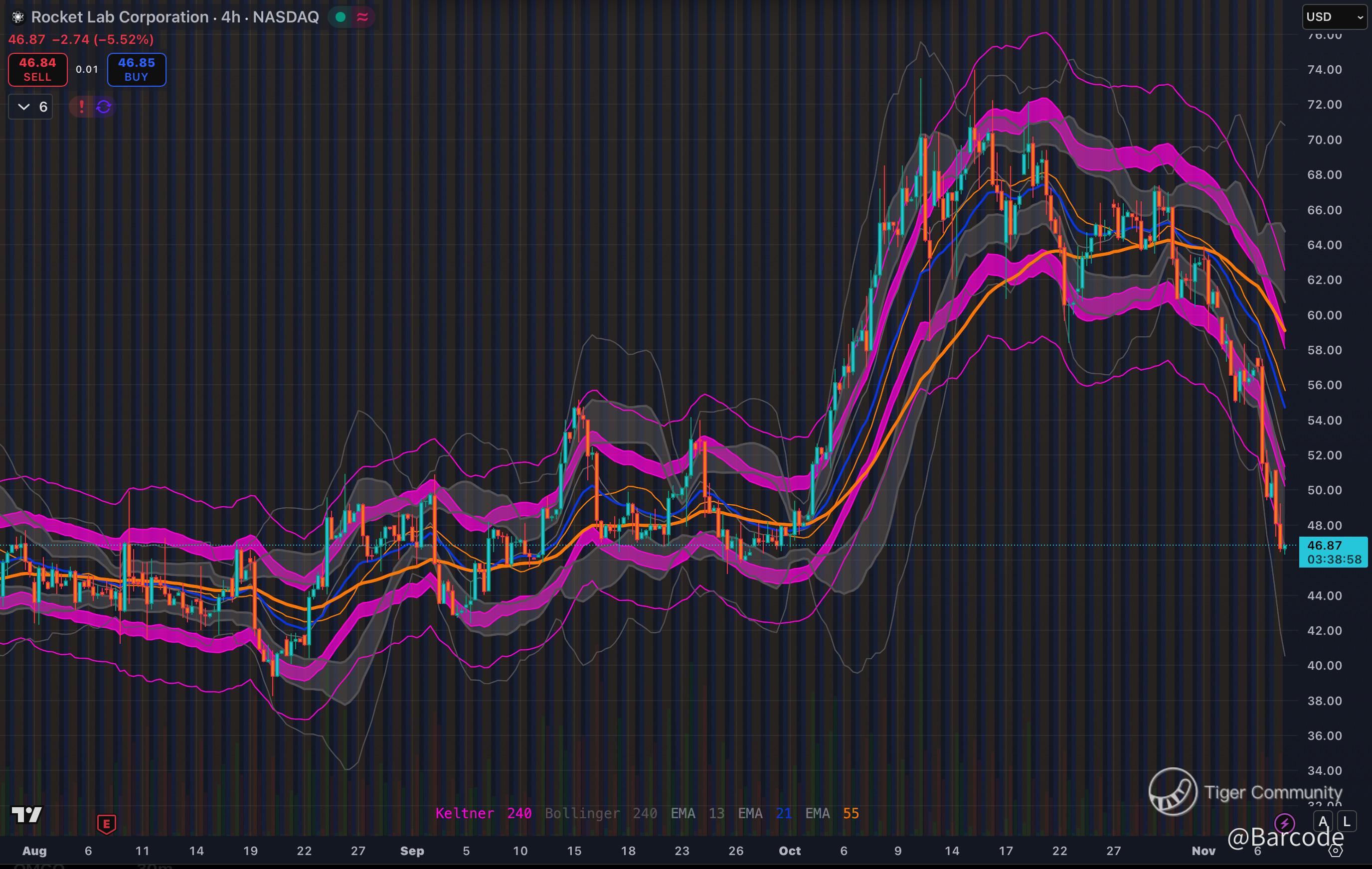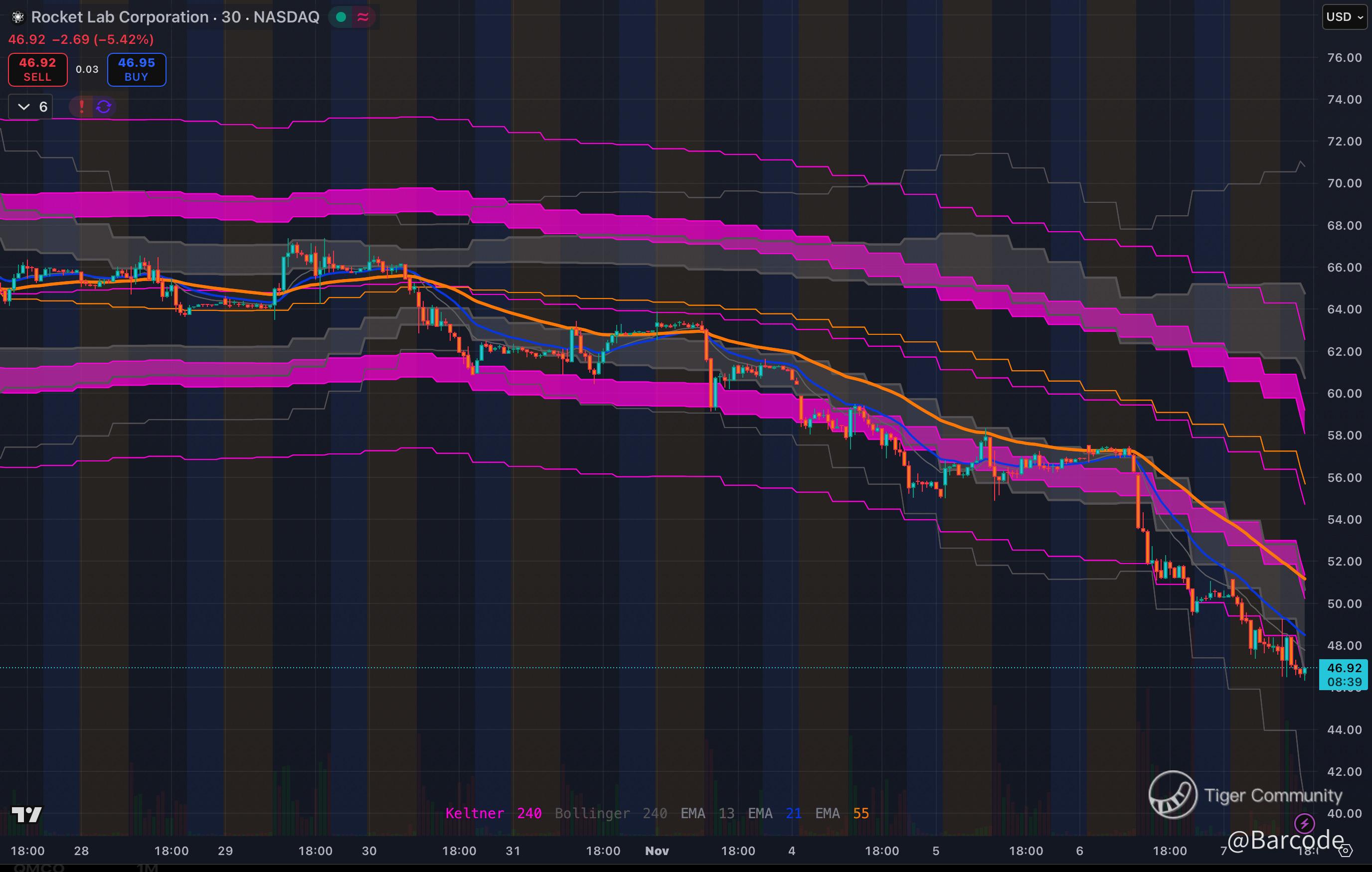 As we head into the 10 Nov 25 earnings call, Iโm positioning for volatility compression to reverse into a momentum ignition event. Buy aggressively on this 50-day MA hold, entering swings below $50 where panic buying thrives, with stop-loss at $46 (channel floor breach) to cap 7 percent downside. Base target $64 on Q3 earnings beat mirroring last yearโs 28.44 percent pop, stretch $83 on Bairdโs PT if Neutron static fires confirm Q4 timeline. Confirmation via volume surge above 22 million shares, breakout retest at $54, and call flow dominance. Upcoming catalysts cluster 10 Nov Q3 earnings call, Neutron stage qualifications, VICTUS HAZE mission, LOXSAT, and 31 Dec FCC expiry, plus rate decisions and Golden Dome bids.