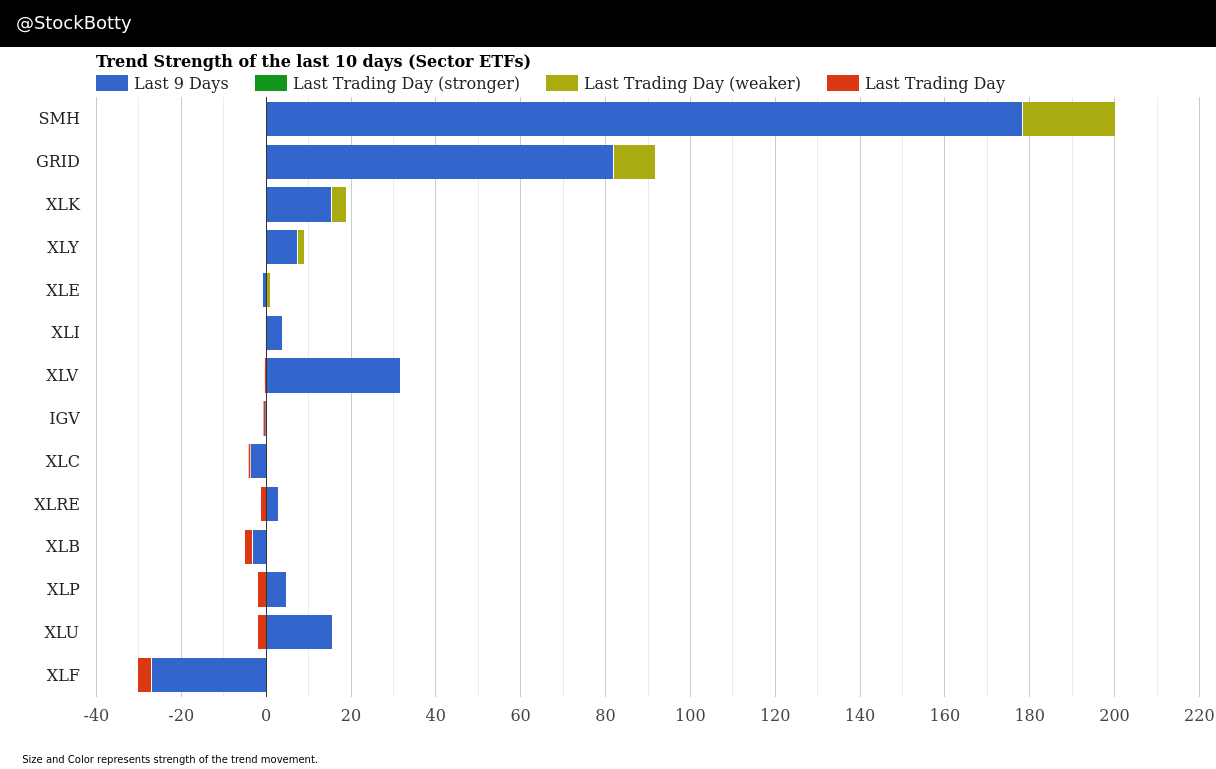 2.Sector ETFs Strength Trend Meter Bar Chart
