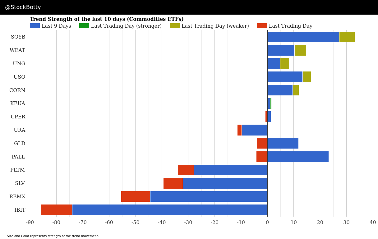 1.Commodities ETFs Strength Trend Meter Bar Chart