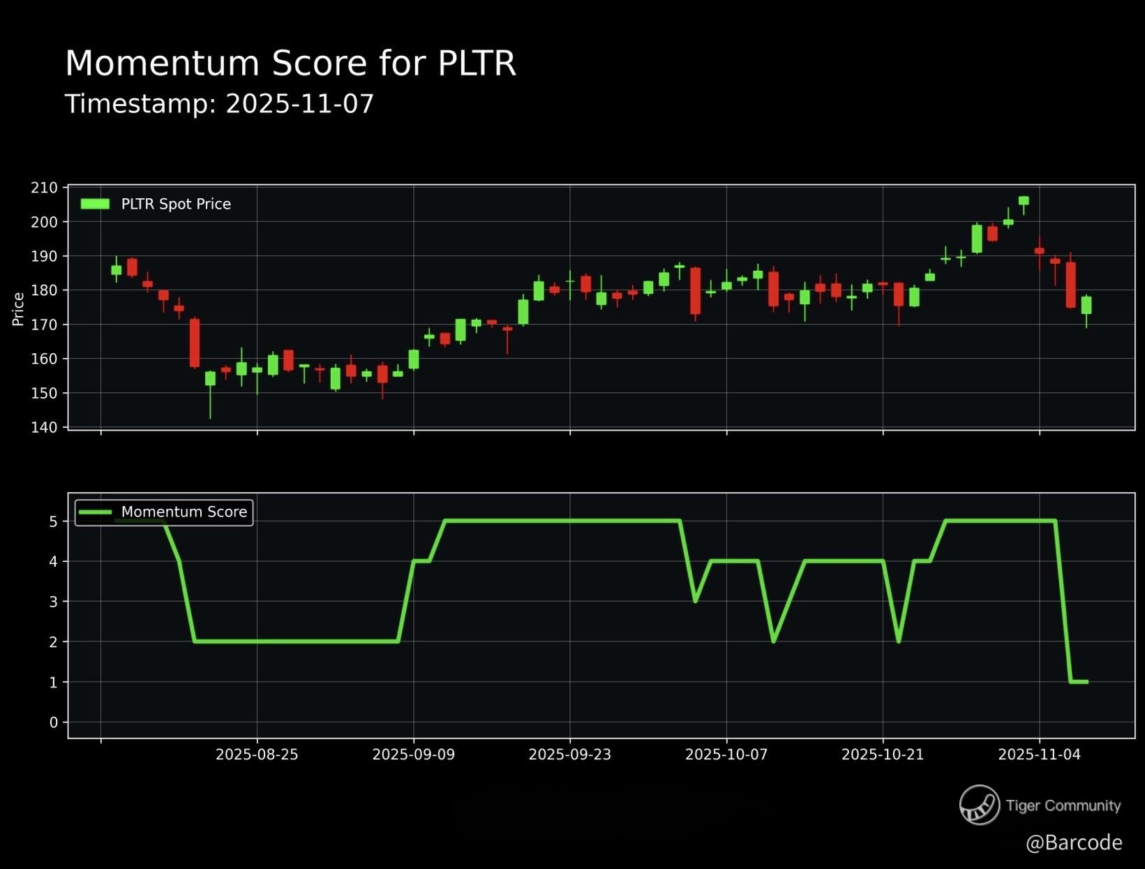 I’m watching $PLTR’s momentum collapse to 1, its weakest reading since August, signalling exhaustion after months of AI-fuelled euphoria. The valuation wall is real, and sentiment is cracking as traders shift from FOMO to defence.