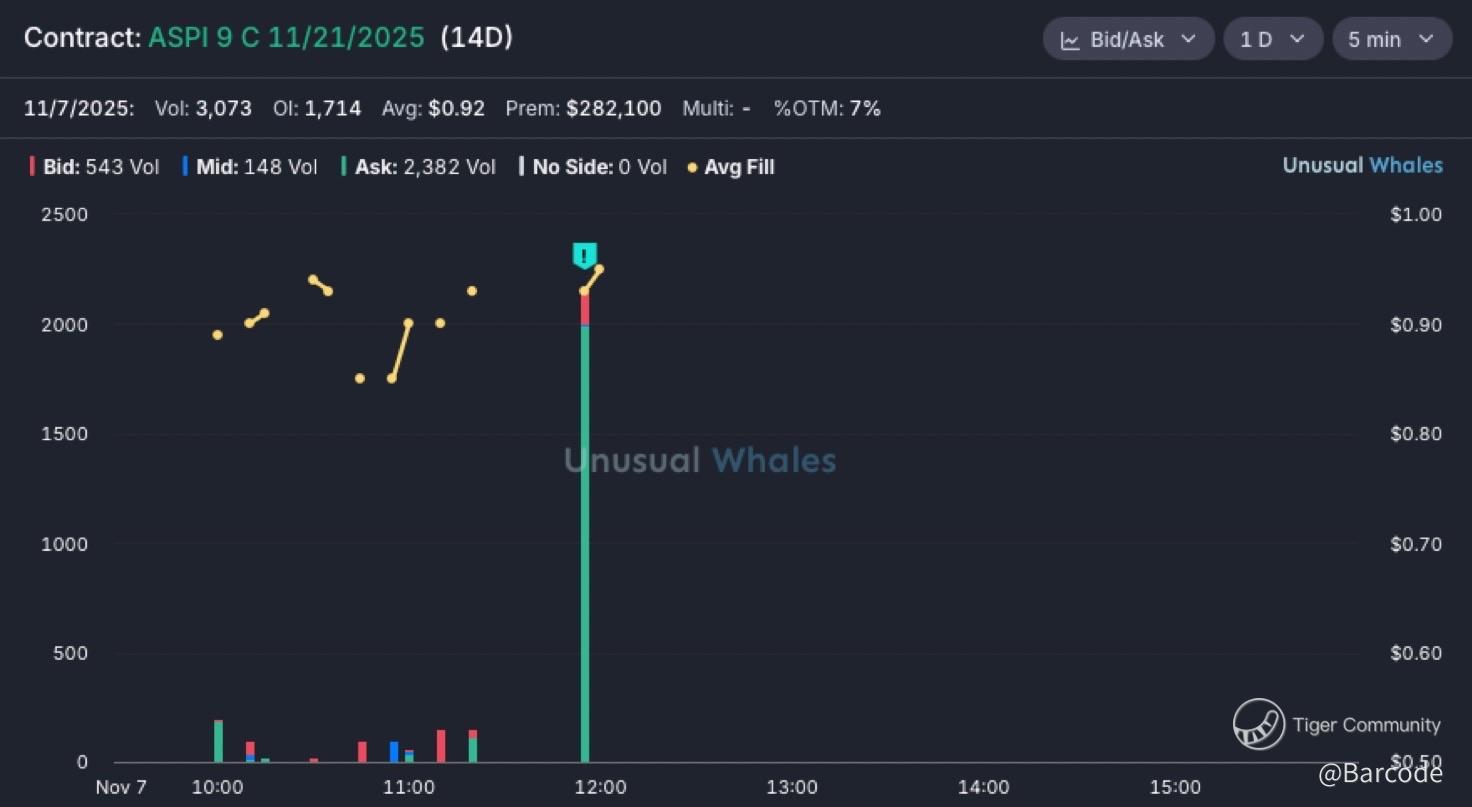 💰 Whale order: $230K on $ASPI 9C 21NOV25