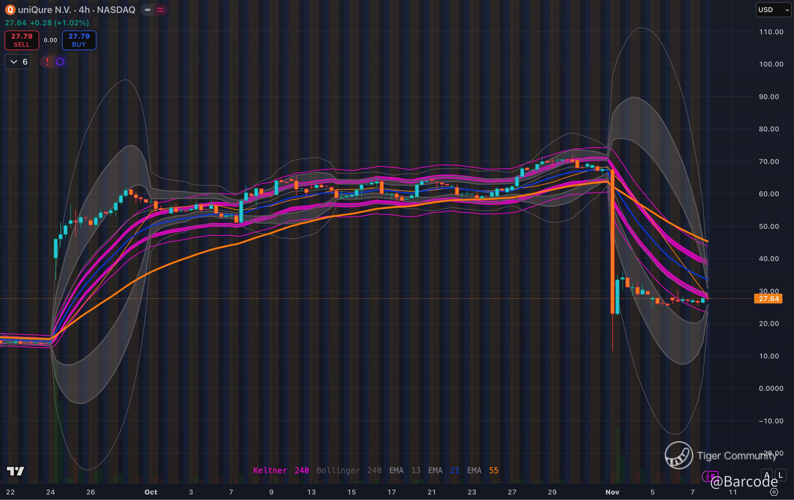 📈🔥 That $QURE base looks textbook. The Bollinger squeeze post-capitulation reminds me of $MRNA before its multi-week reversal. I like that you linked the EMAs aligning because it adds a structural layer. If volume expands, it could turn fast. That $31.50 marker stands out.