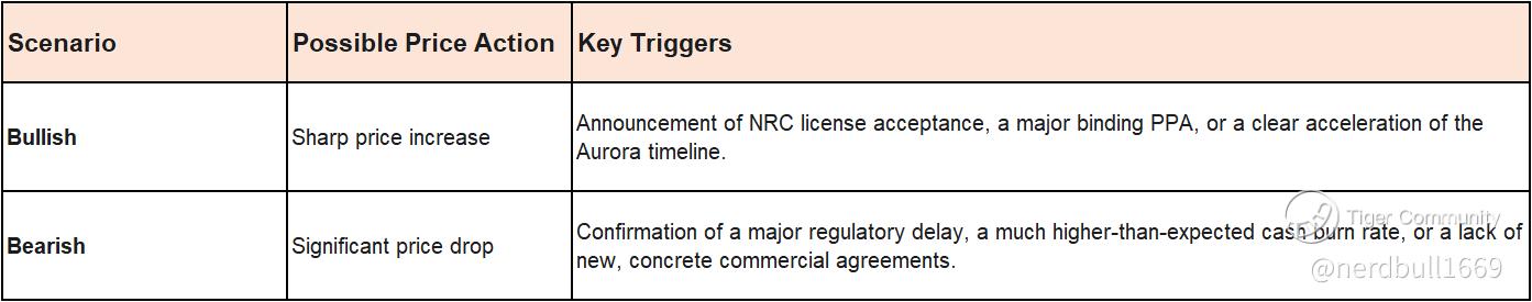 Investor Focus: Investors must prioritize regulatory progress (NRC licensing status) and project development timelines (Aurora construction) over quarterly profit/loss fluctuations. An operational setback (e.g., a licensing delay) is a far greater risk than a temporary miss on quarterly expense estimates.