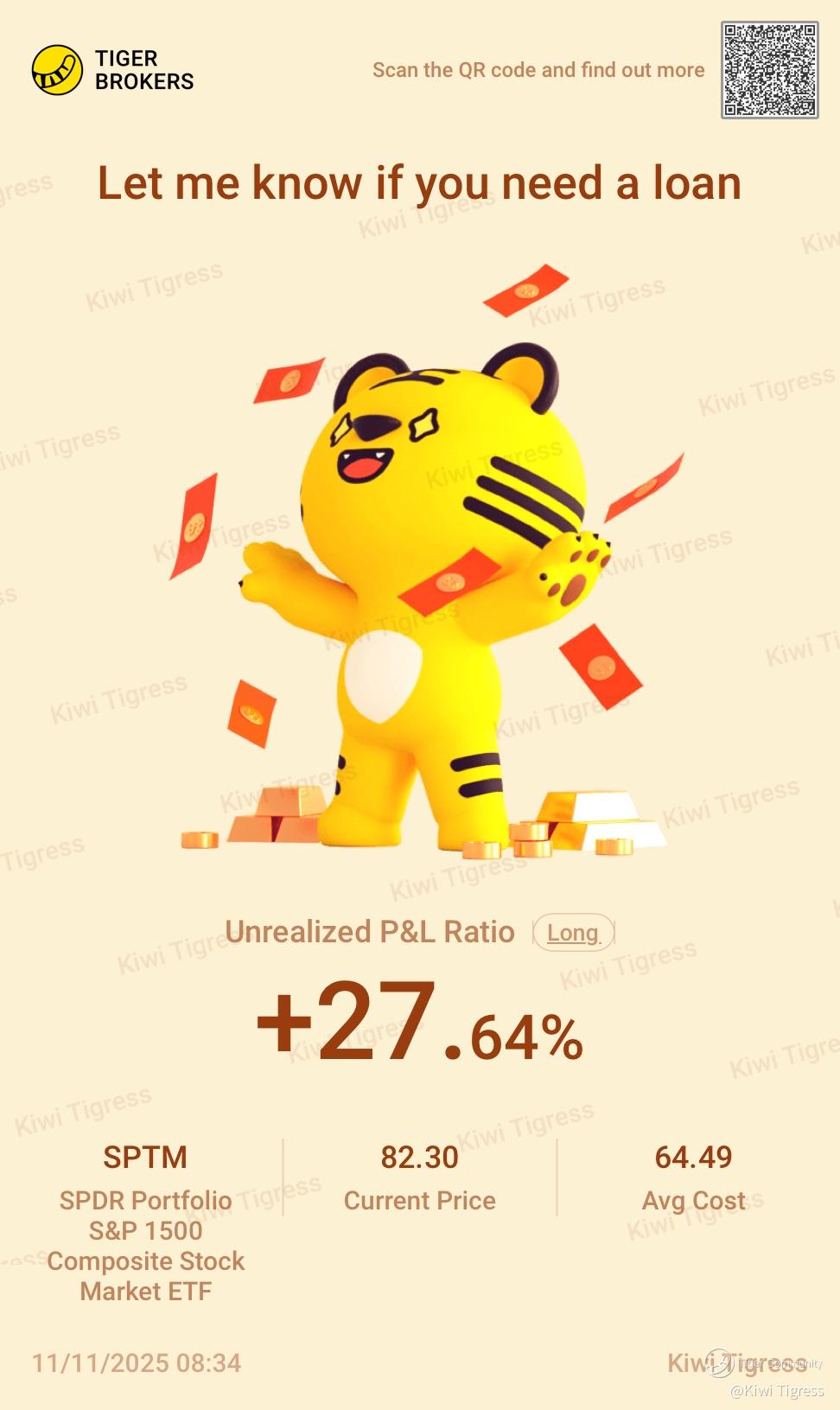 Fam we up +27.64% on my SPTM play! That’s basically the whole US market going full send. The government shutdown drama in DC finally cooling off, Trump out here trying to spin it like he predicted the rebound 😂 Markets said bet and went straight risk on. Liquidity’s flowing again, the Fed chillin, CPI behaving, and cyclicals waking up like they just had five shots of espresso ☕📈