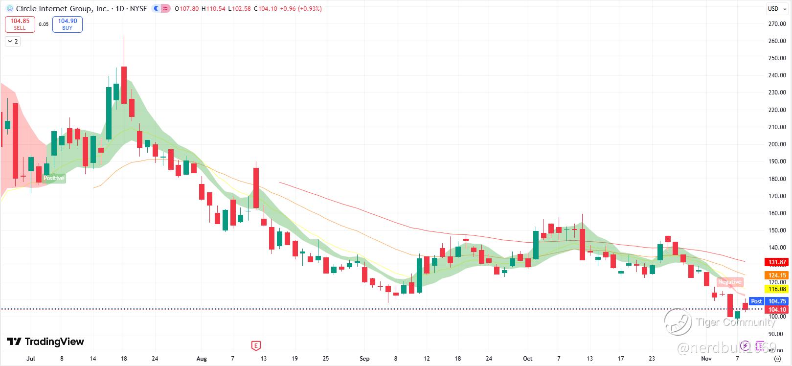 CRCL have been on a decline over the past weeks, only managed to see an upward movement from last Friday, but the RSI momentum have turned from positive to negative, this might signal that the concerns whether stablecoins stock could really survive.