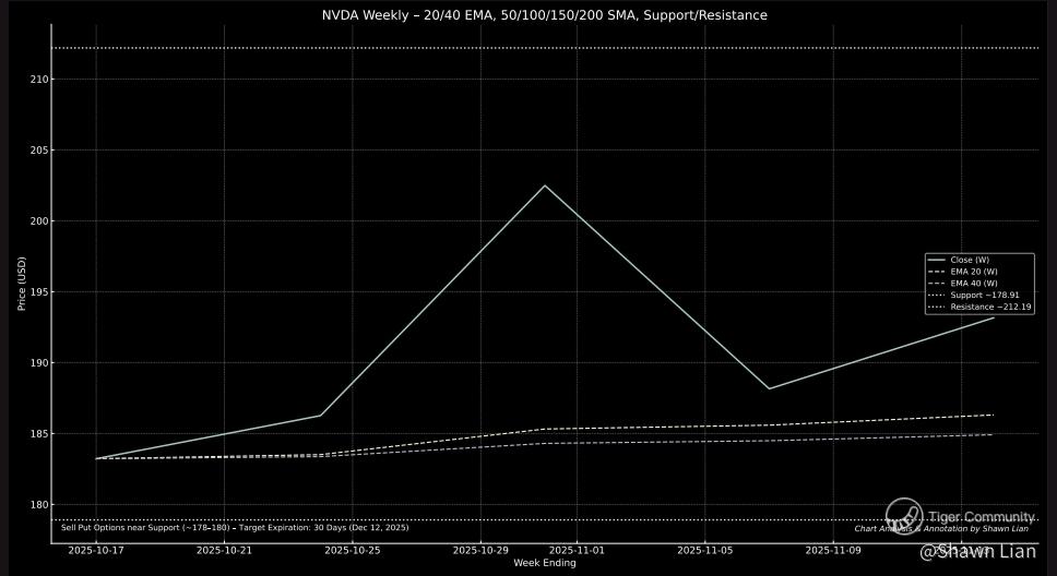 Initiating sell put options near the identified support zone (~$178–$180) to capitalize on potential rebound momentum within the prevailing medium-term bullish trend. With EMAs holding above the long-term SMAs and weekly structure showing higher lows, the 30-day expiration (Dec 12 2025) offers favorable theta decay while maintaining defined risk below the 200-day SMA. Continuous monitoring of volume and price action at the support area is recommended to confirm strength before rolling or adjusting positions.