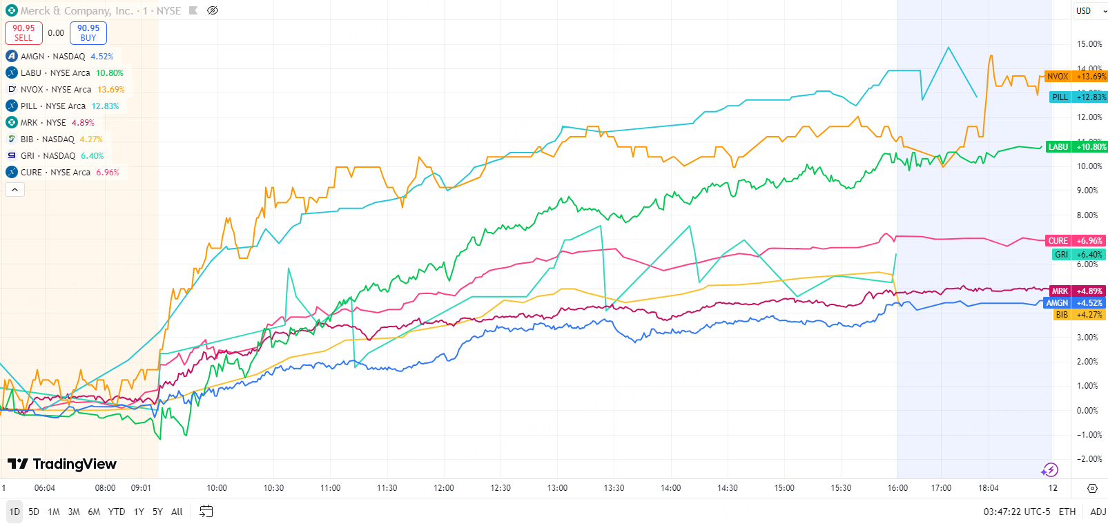 Pharma ETFs like $ProShares Ultra Nasdaq Biotechnology(BIB)$ , $GRI BIO INC(GRI)$ , and $Direxion Daily S&P Biotech Bull 3x Shares(LABU)$ , $Direxion Daily Pharmaceutical & Medical Bull 3X Shares(PILL)$ , $Direxion Daily Healthcare Bull 3X Shares(CURE)$ all rose, showing institutions are piling into this defensive growth sector.