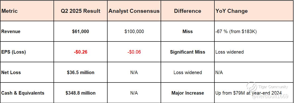 Widened Net Loss (Non-Cash): The net loss of was significantly larger than the EPS consensus. Crucially, a large portion () of this loss was non-cash, stemming from the mark-to-market valuation of a warrant derivative liability. The operating loss, which reflects cash burn from operations, was .