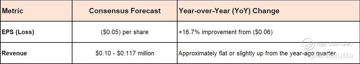 Revenue Forecast: Revenue is expected to be small, around $0.10 - $0.117 million, largely flat compared to the year-ago quarter. A significant revenue surprise is unlikely but would be a major catalyst.