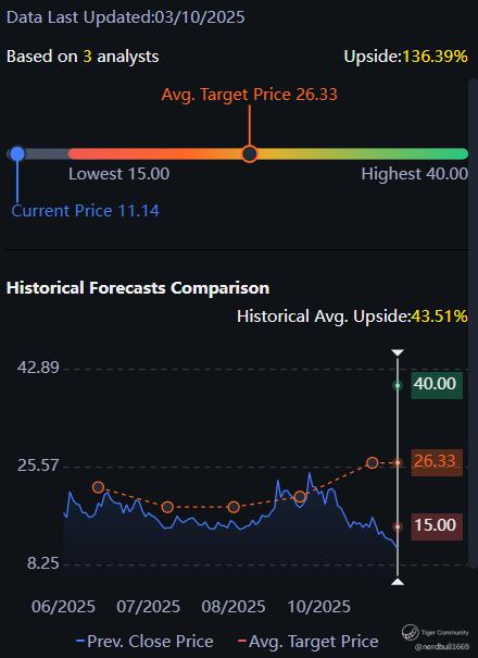 Based on 3 analysts from Tiger Brokers offering 12 month price targets for Quantum Computing in the last 3 months. The average price target is $26.33 with a high forecast of $40.00 and a low forecast of $15.00. The average price target represents a 136.39% change from the last price of $11.14.