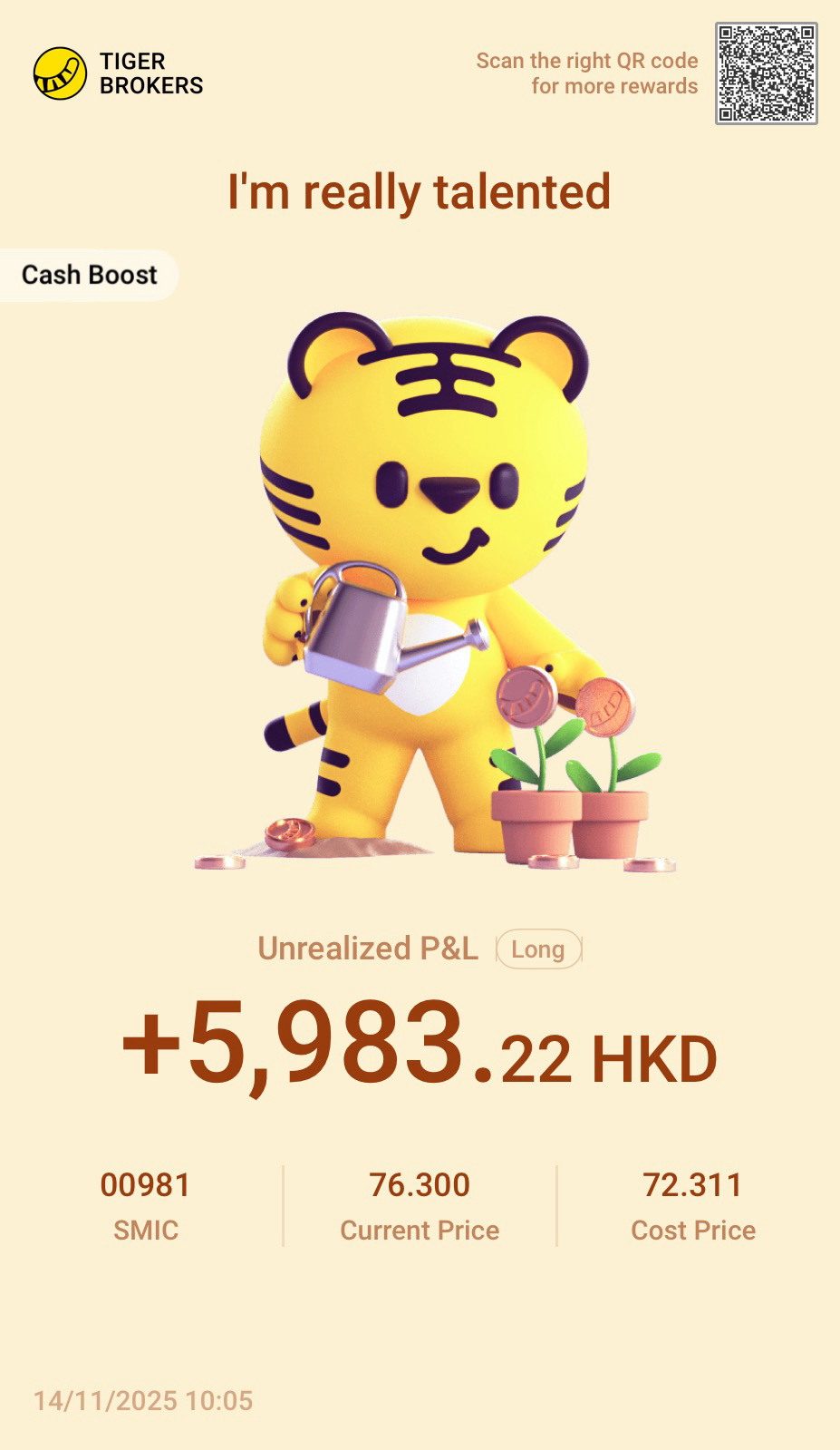 Another big wins come from @ElvisMarner at $SMIC(00981)$ making HKD 5983 using CBA account.