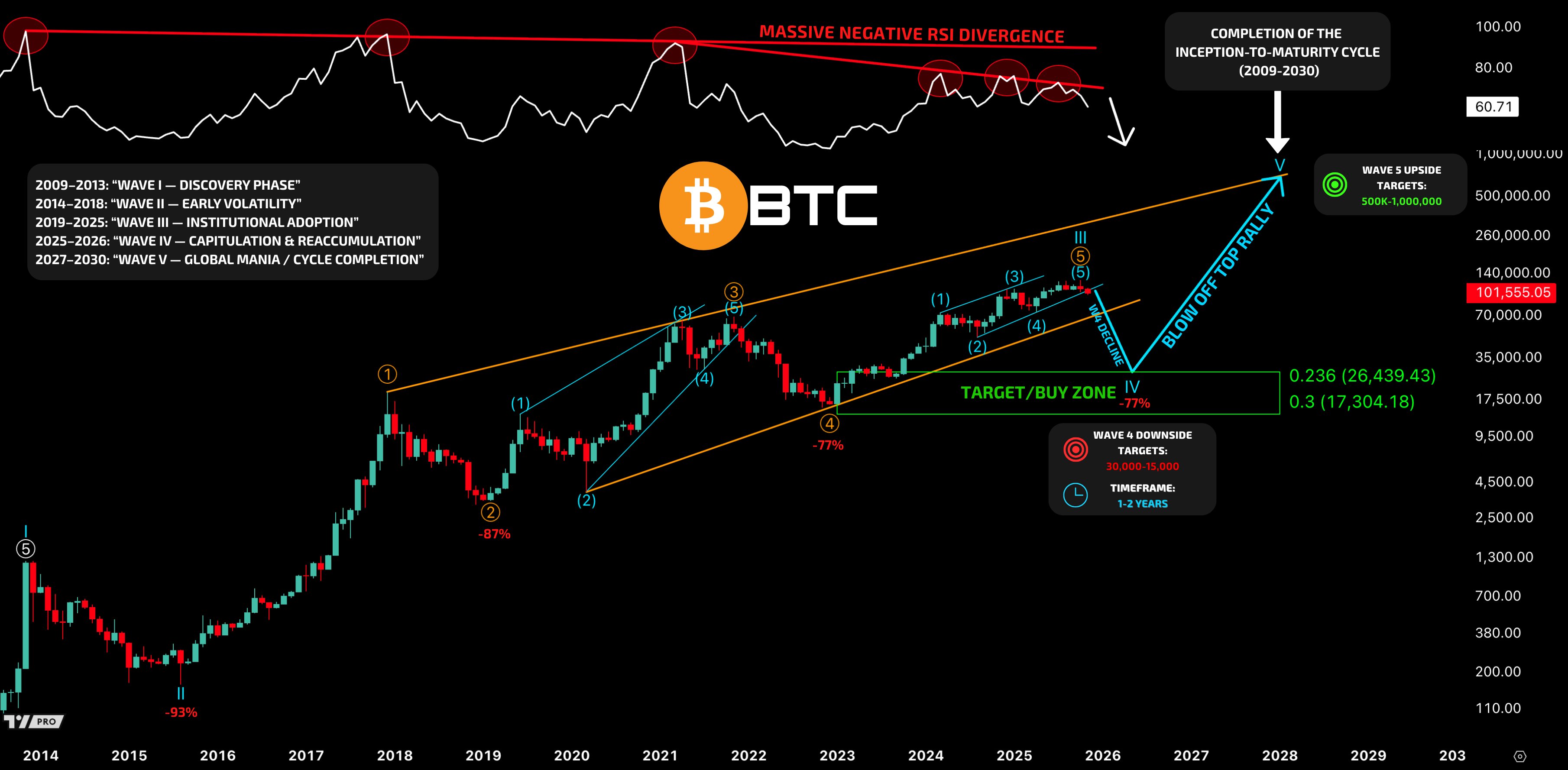 Bitcoin Begins Major Wave 4 Pullback Toward $30K–$15K