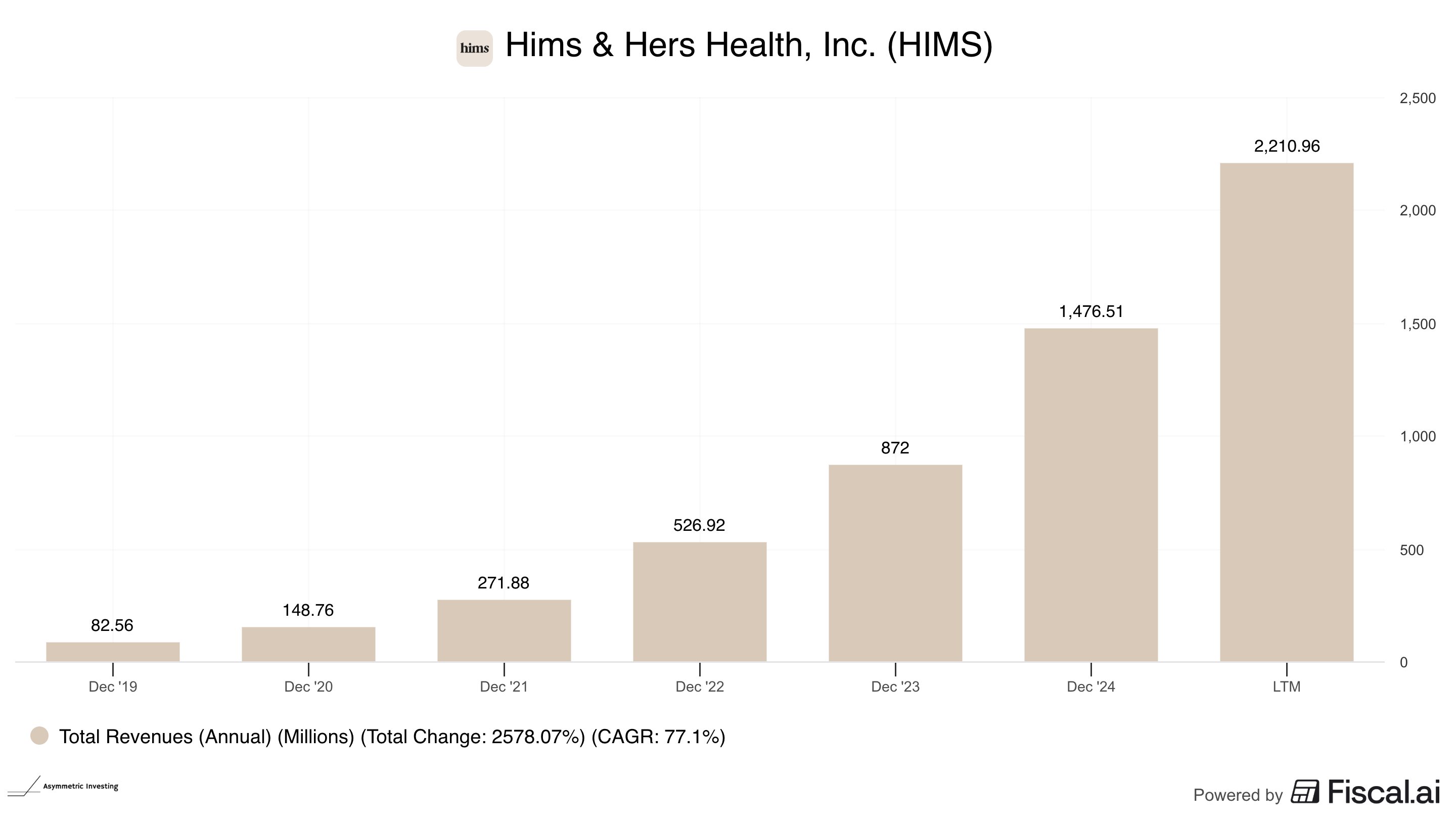 3. $Hims & Hers Health Inc.(HIMS)$ Quick reminder, there's a company out there compounding revenue at 77% and trading for just 4x sales.