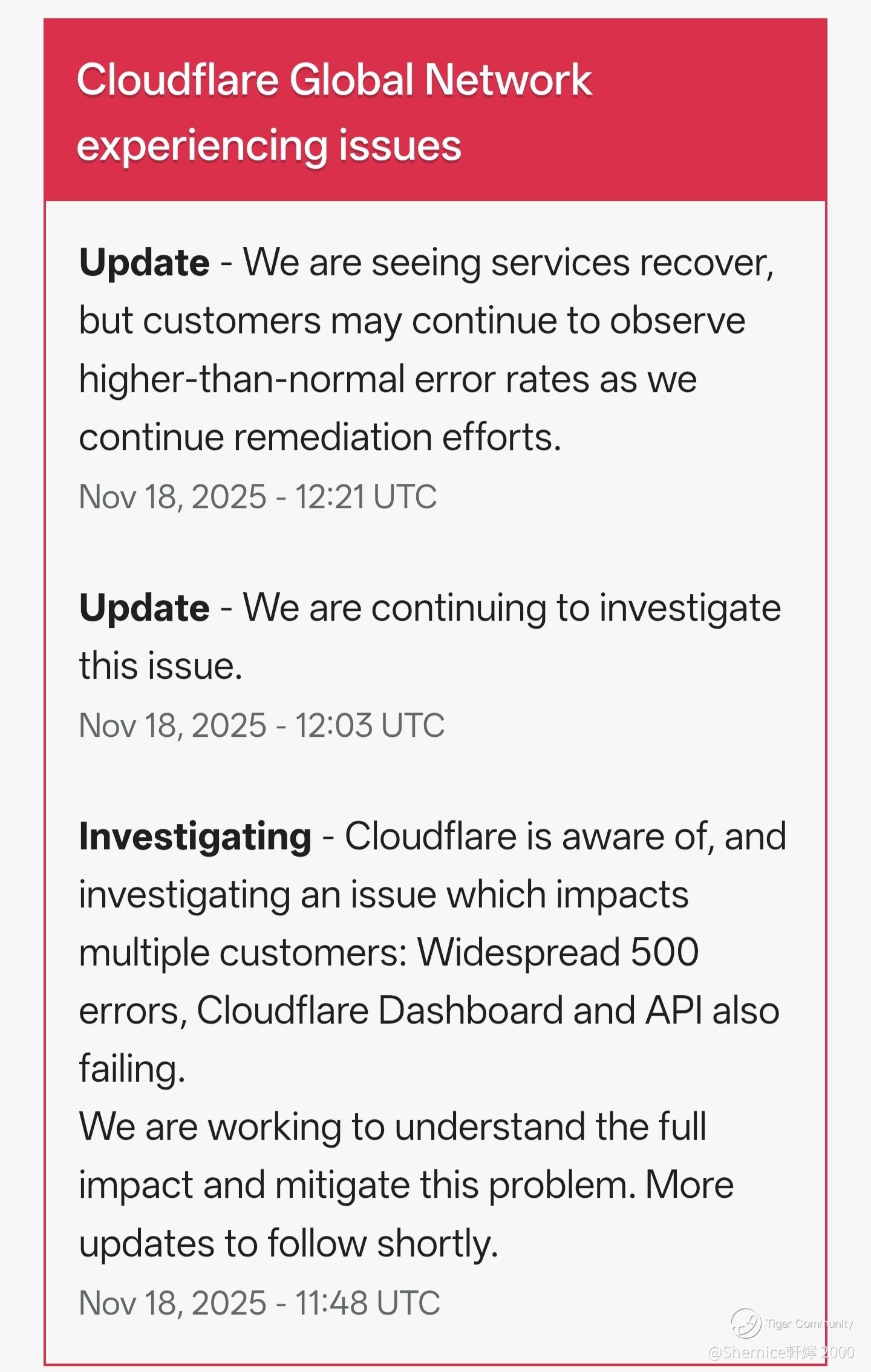November 18, 2025, Cloudflare is currently experiencing a major outage that's disrupting services for millions of users worldwide. The issue began around 6:00 AM ET (11:00 UTC) and has caused widespread 500 errors, affecting not just Cloudflare's own dashboard and API, but also sites and apps relying on its infrastructure. This includes social platforms, gaming services, and AI tools.