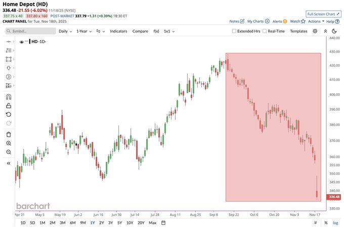 Home Depot has now plunged more than 20% over the last 2 months 📉📉