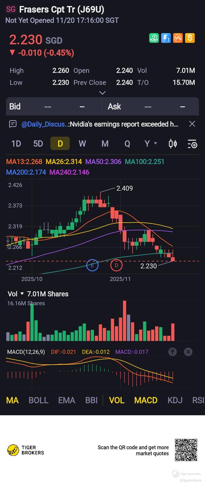 Frasers Cpt - Chart wise, bearish mode. She may go down to test 2.20 and then 2.15.