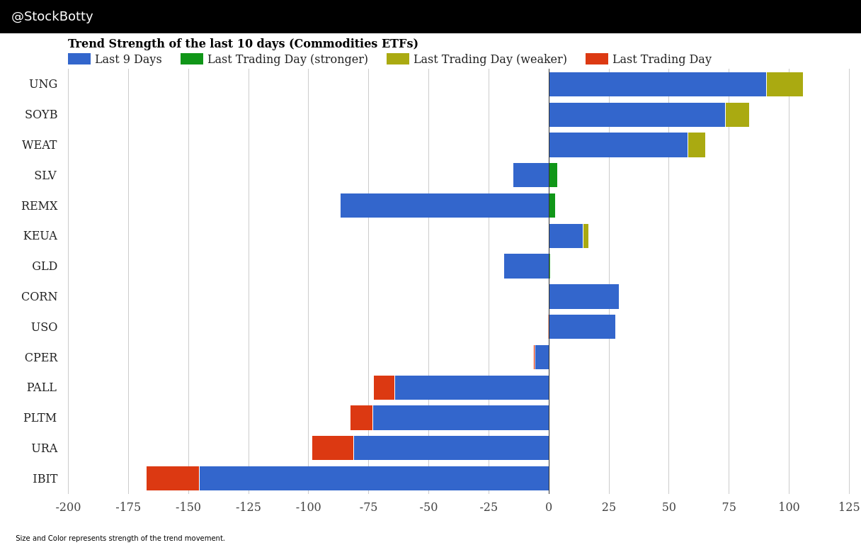 3.Commodities ETFs Strength Trend Meter Bar Chart