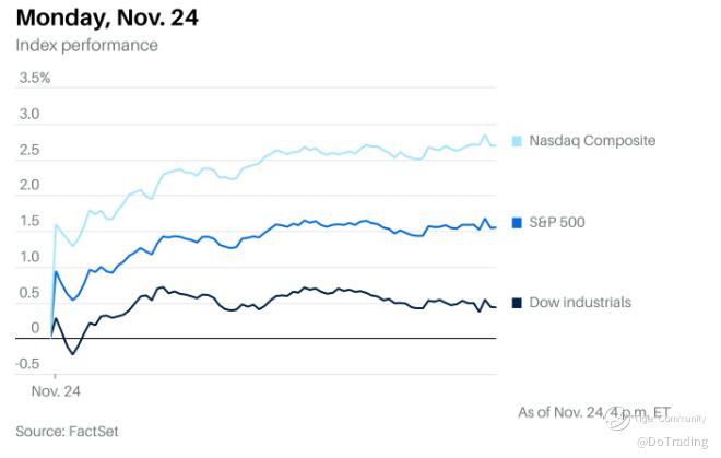 Stocks kicked off the week with a broad rally, easing worries after a bruising November. While the month is still on pace to be the worst November since the Great Recession, Monday gave investors something to be thankful for.