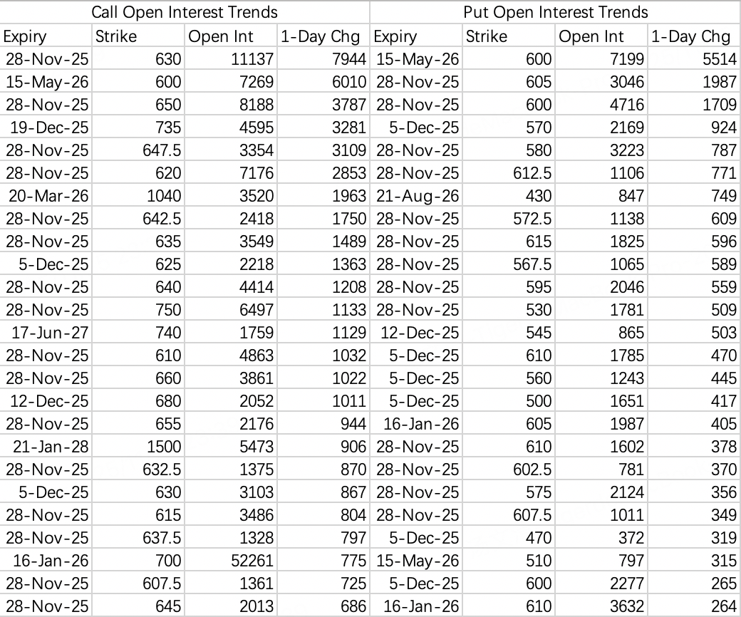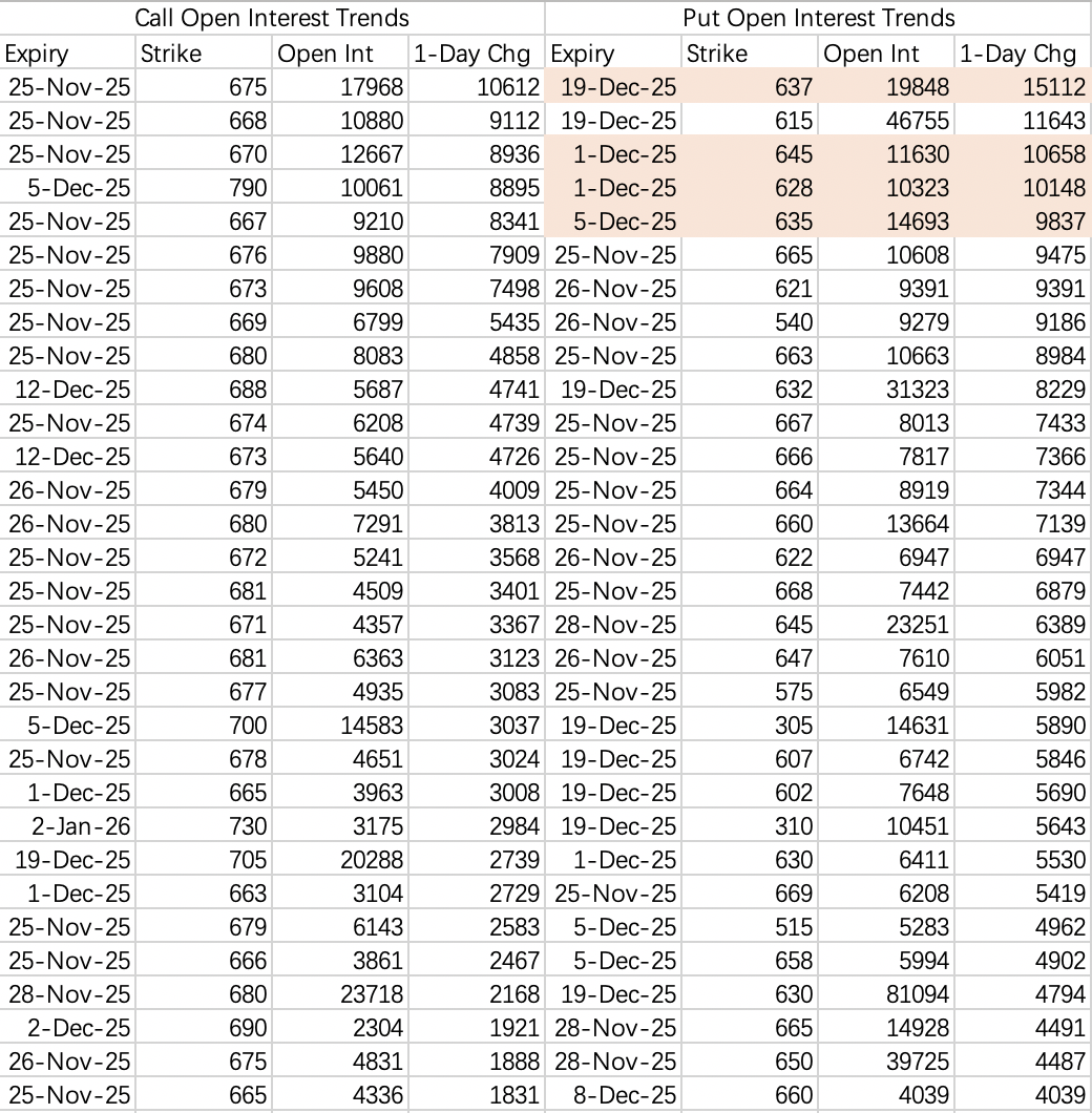 Quick take: It's Thanksgiving week—closed Thursday, half-day Friday. Expect the selling to pause this week, with SPY finishing above its 5-day MA. But the trend hasn't reversed. Next week still looks bearish—shorts are already positioned, targeting 635.