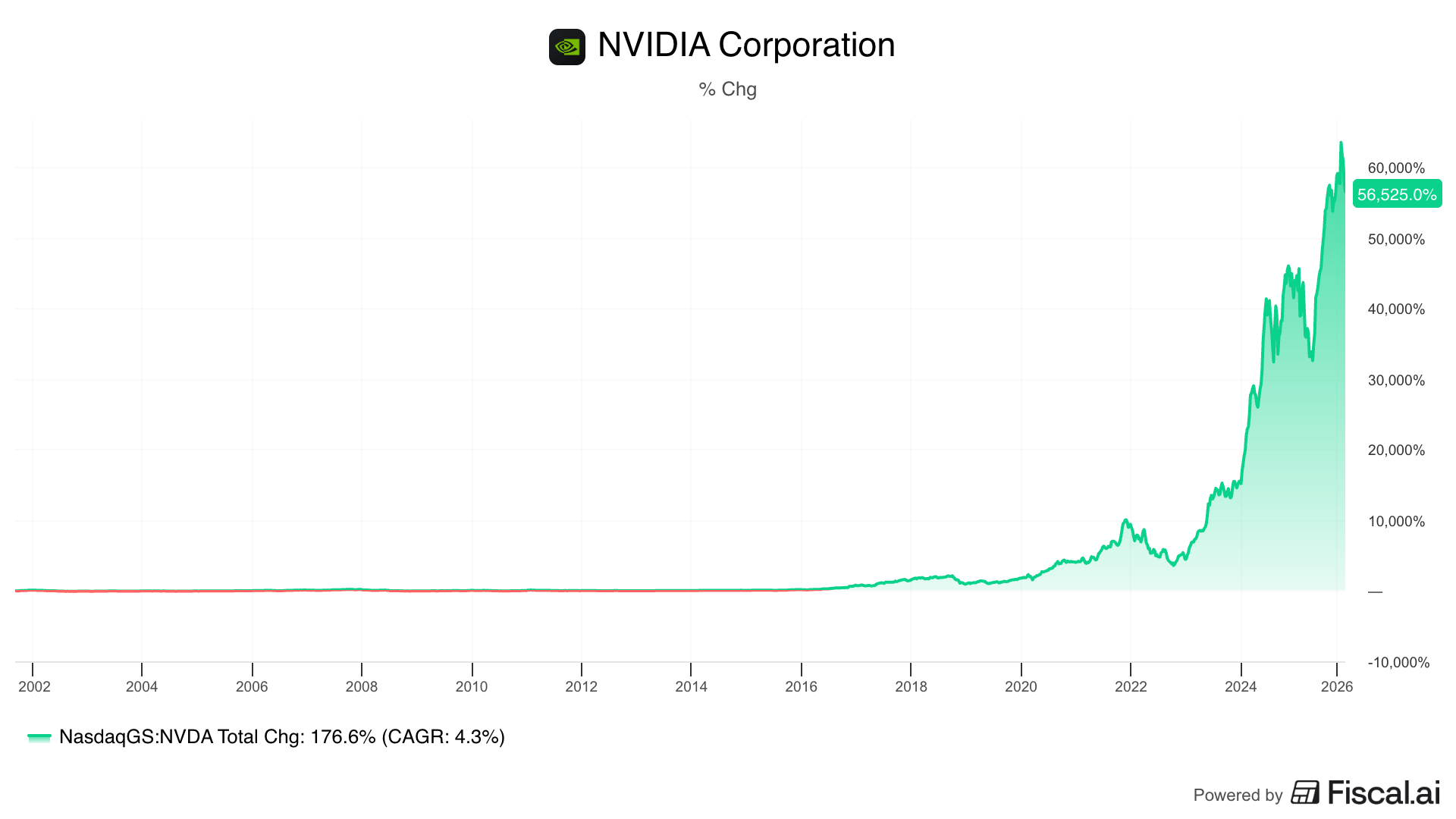 Take $NVIDIA(NVDA)$ as an example. The stock has been an incredible performer over the past two decades.