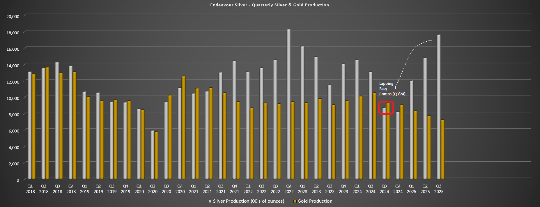 Endeavour has seen its share price surge over the past few months and found itself up ~130% YTD. This strong performance is largely related to it being a beneficiary of rising silver prices but also because of its scarcity, with M&A earlier this year shrinking the number of silver producers available for investment.
