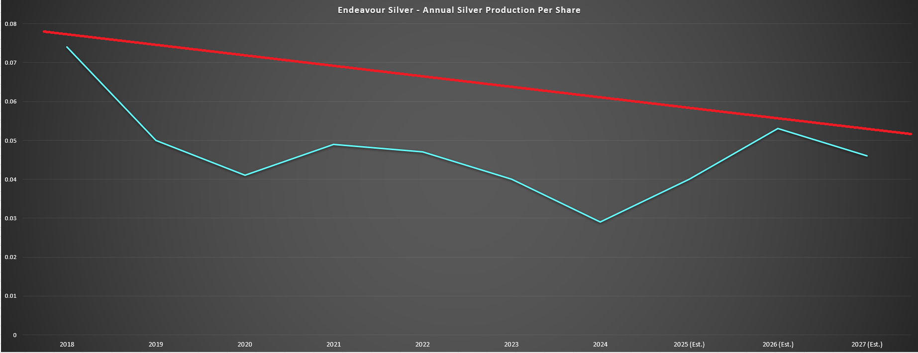 However, while Endeavour Silver is certainly a beneficiary of record silver prices and sports a growing production profile, the road from construction to commercial production at Terronera over the past three years has been littered with expensive share dilution, dramatically reducing the per-share benefit to shareholders.