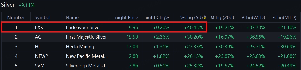 In the past five days, $Endeavour Silver(EXK)$ 's share price has risen by 40.45%.