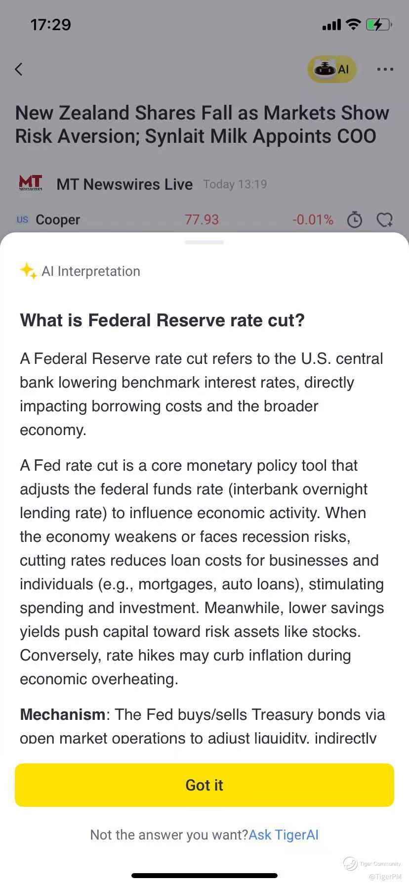 On the News Detail and Post Detail pages, professional financial terms and technology keywords are now underlined. Users can tap any highlighted term to quickly view its definition, and can further ask TigerAI follow-up questions to learn more financial knowledge.