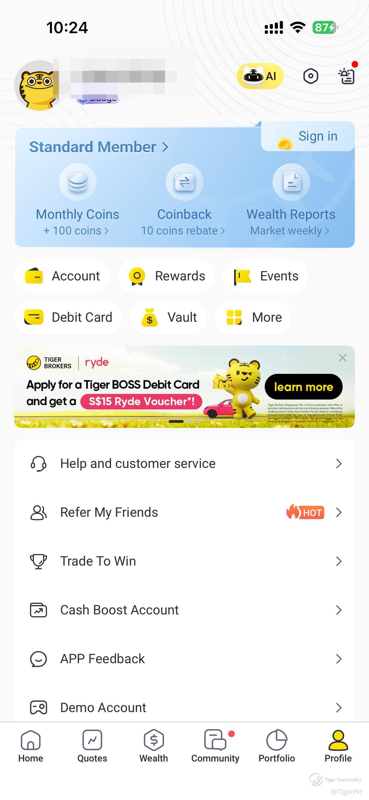 [New] Membership gets a major upgrade: Launch of the new "Tiger Coin" feature. Every transaction earns "Tiger Coins", which can be directly used to redeem various generous rewards such as commission-free cards, vouchers, Tiger peripherals, etc. The member benefits on the "My" page are clearly displayed, allowing you to enjoy them with one click.