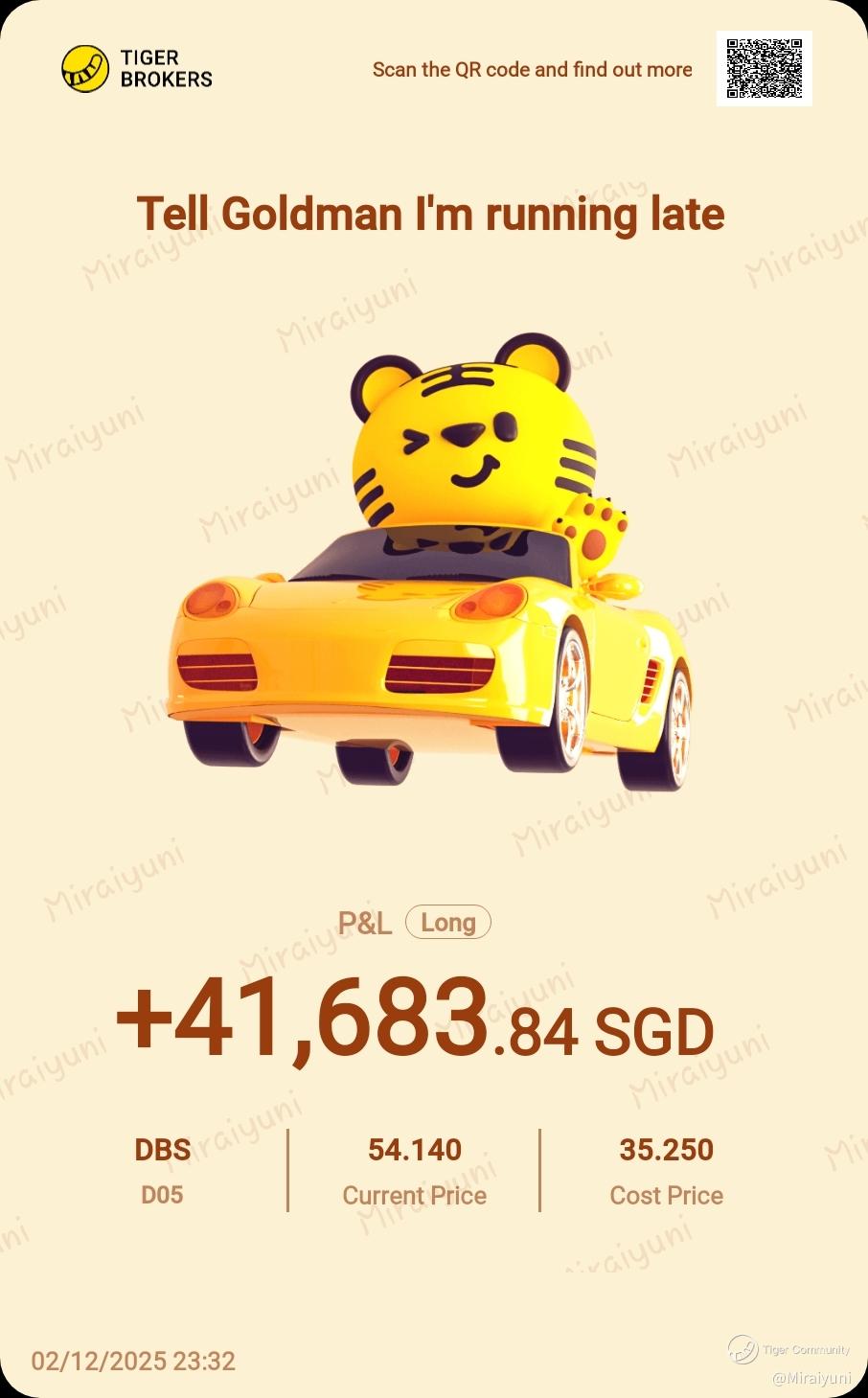 Invested DBS since 2023. Really did not think it would get this far. I will keep buying once SGX rolls out their new policies on 10 lots for companies valued $10 and above!