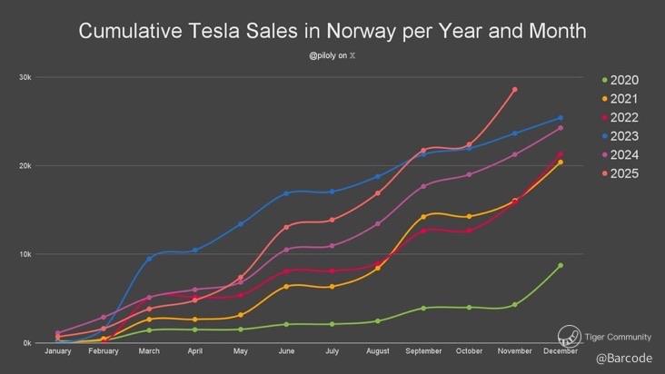 This is where the geographic mix matters. November data show Tesla registrations falling 58% in France and 49% in Denmark as subsidies roll off and Chinese competitors, particularly BYD, step up. That is a genuine headwind. However China is moving in the opposite direction, with Q4 pointing to rare year on year growth and full year 2025 deliveries projected around 1.66M vehicles, heavily driven by Model Y demand. That volume, combined with Teslaโs vertical control of batteries, software, and manufacturing, supports the long term cost curve.
