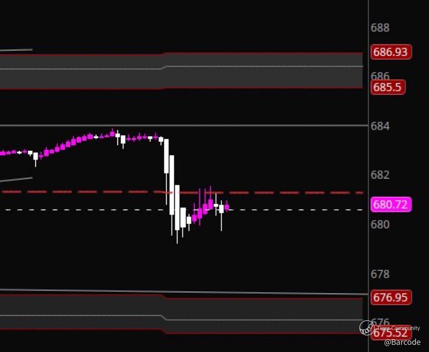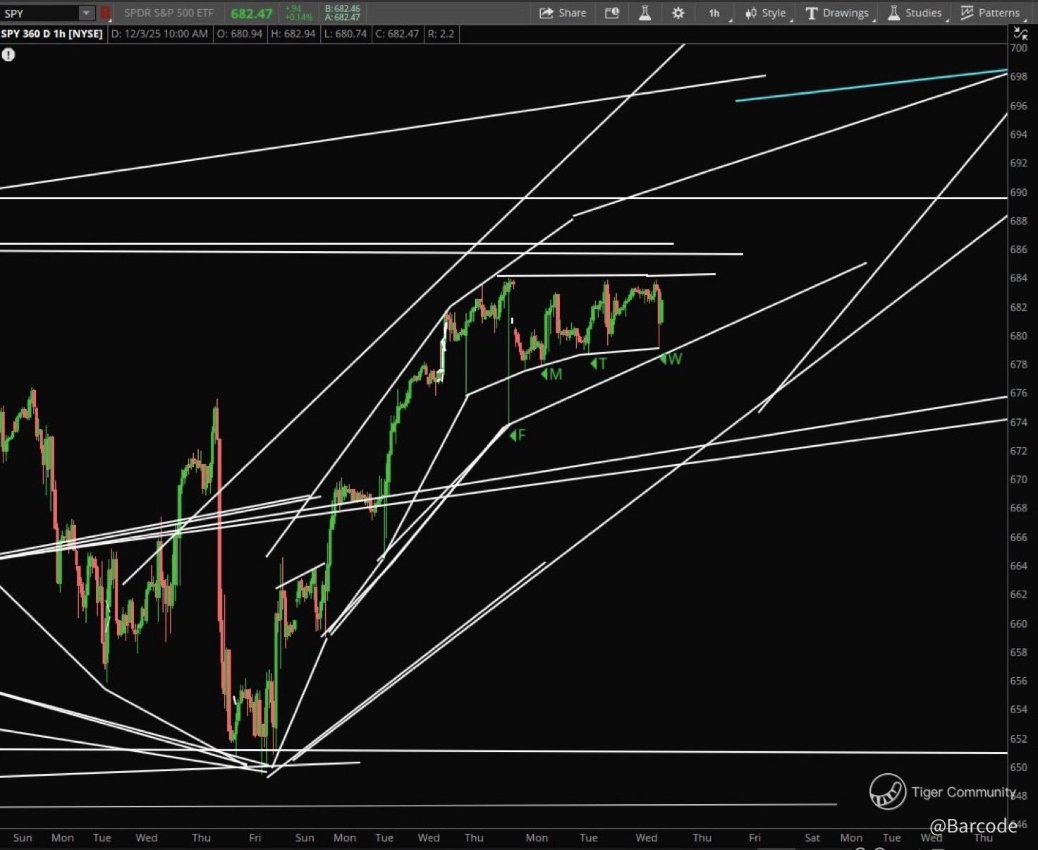 This remains a slow-burn squeeze setup with controlled volatility. Hold above $681 and rotate back over $683 and the next breakout wick targets upper diagonal resistance. Lose $681 and mean reversion becomes fast and mechanical. Pattern integrity remains intact until that lower rail breaks.