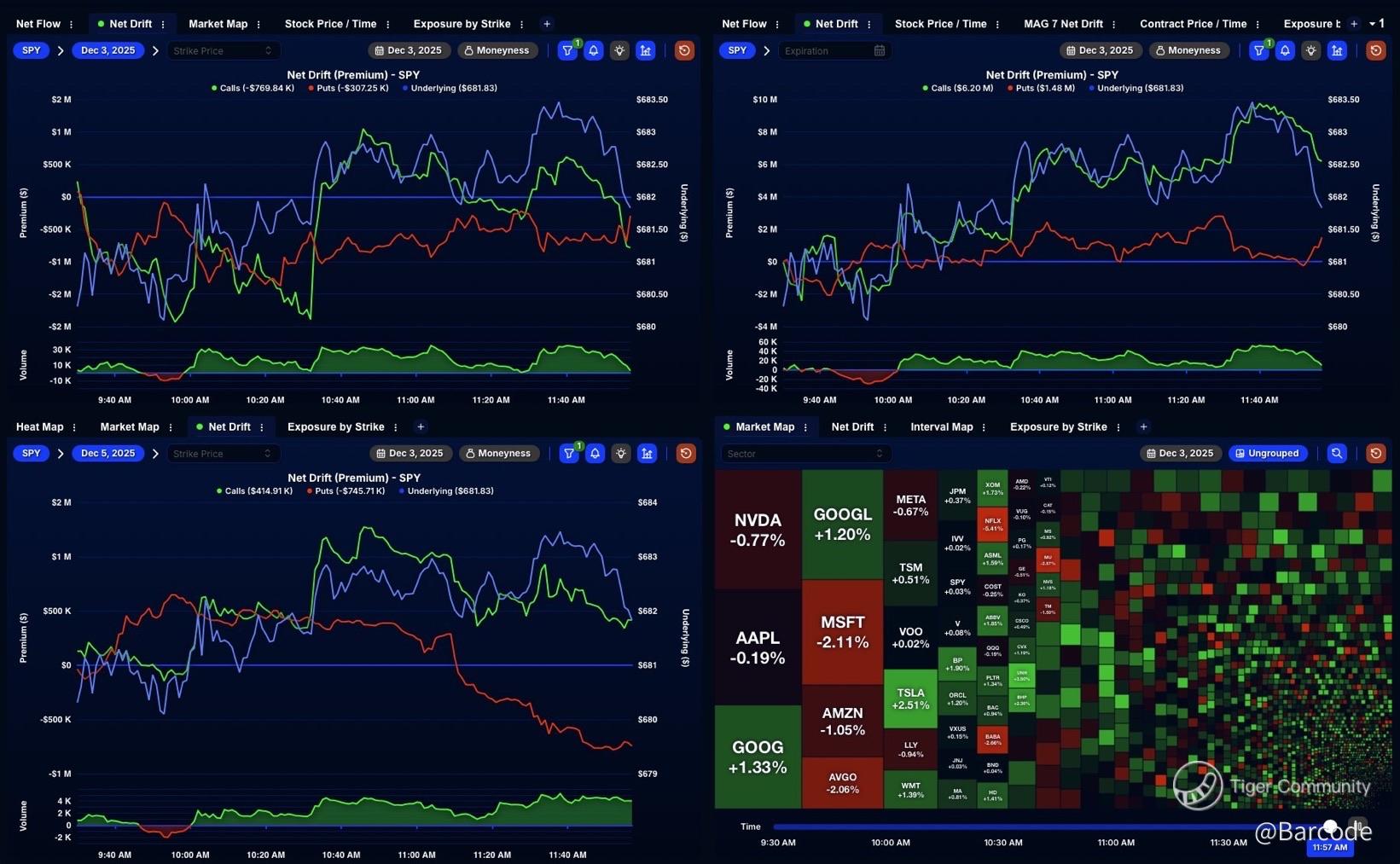 0DTE flow has flipped. Puts on $SPY now lead calls by around $700k intraday which shifts dealer hedging behaviour. Instead of supporting continuation, it increases the chance price gets walked into the nearest liquidity pocket at $678 if bulls don’t hold this line.