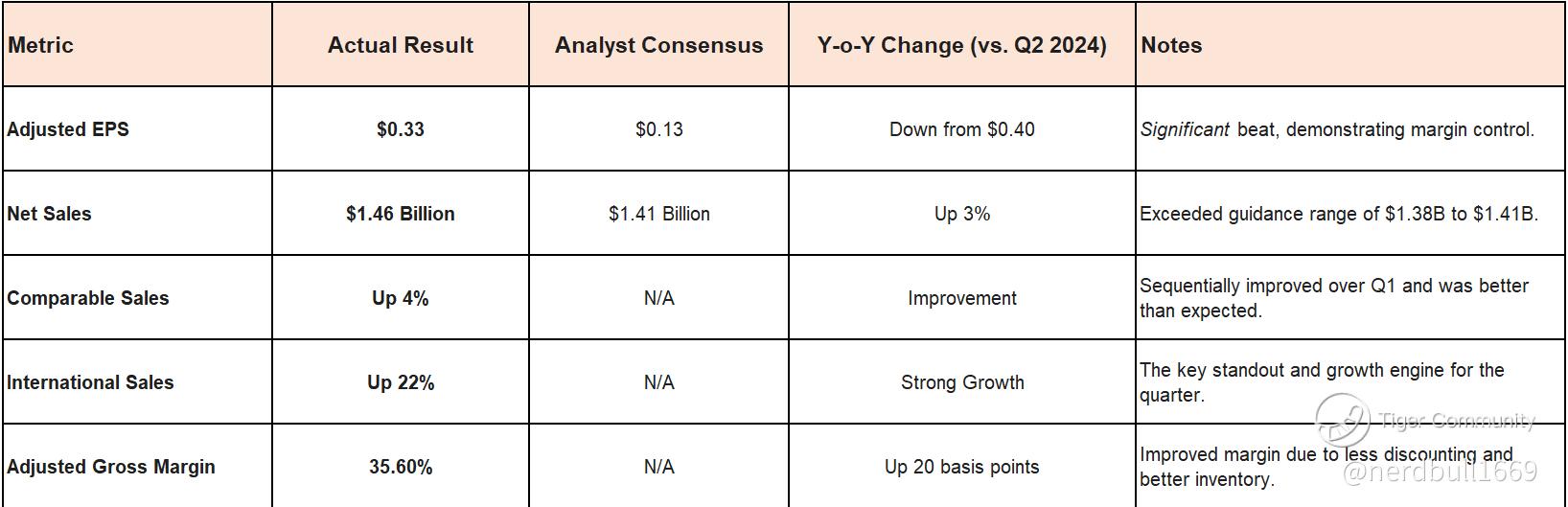 Surprise Beat/Miss on Comps or Margin: A significant beat on Comparable Sales or Gross Margin will likely signal that the turnaround is ahead of schedule, potentially leading to a rally. A miss on these core metrics, despite meeting EPS, could lead to a sell-off.
