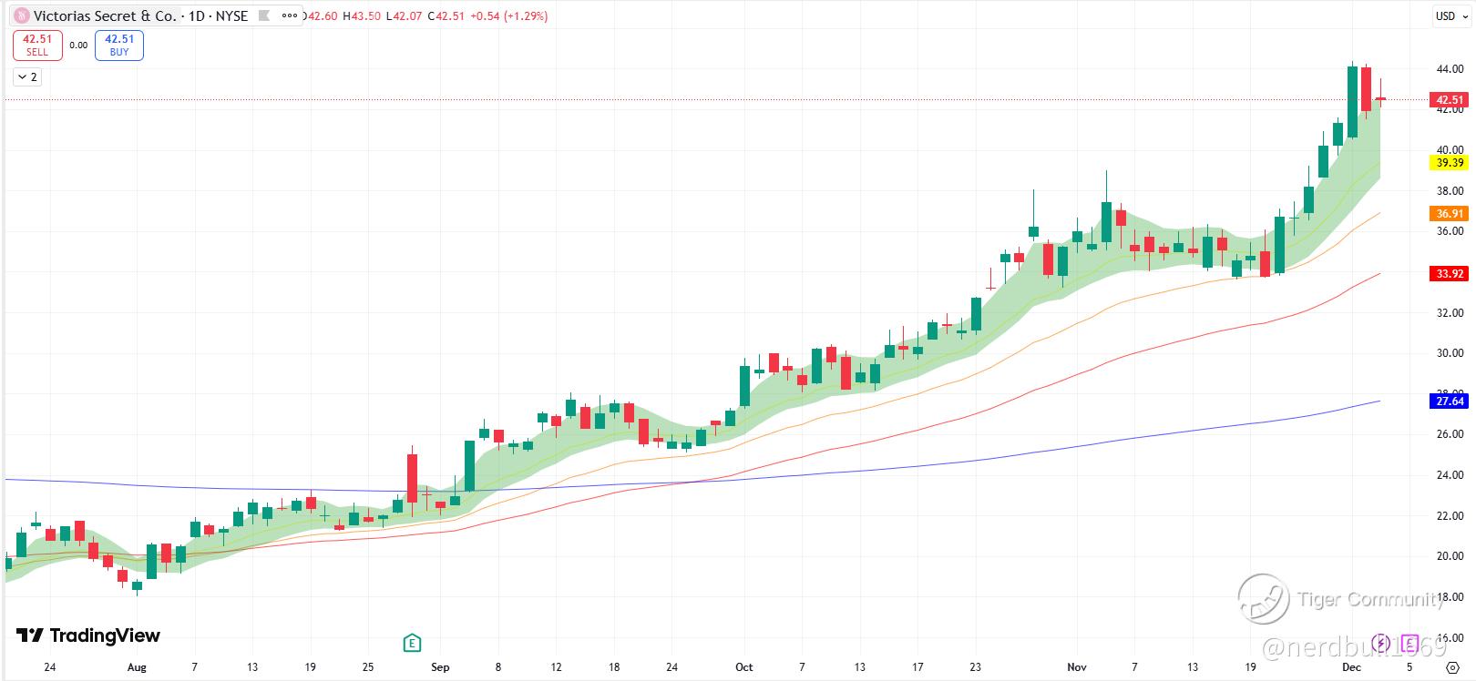 VSCO have been making upside movement despite a broad market pullback at the end of November, and it has maintained a positive RSI momentum, and we can see that investors sentiment are still strong from the stock price movement.