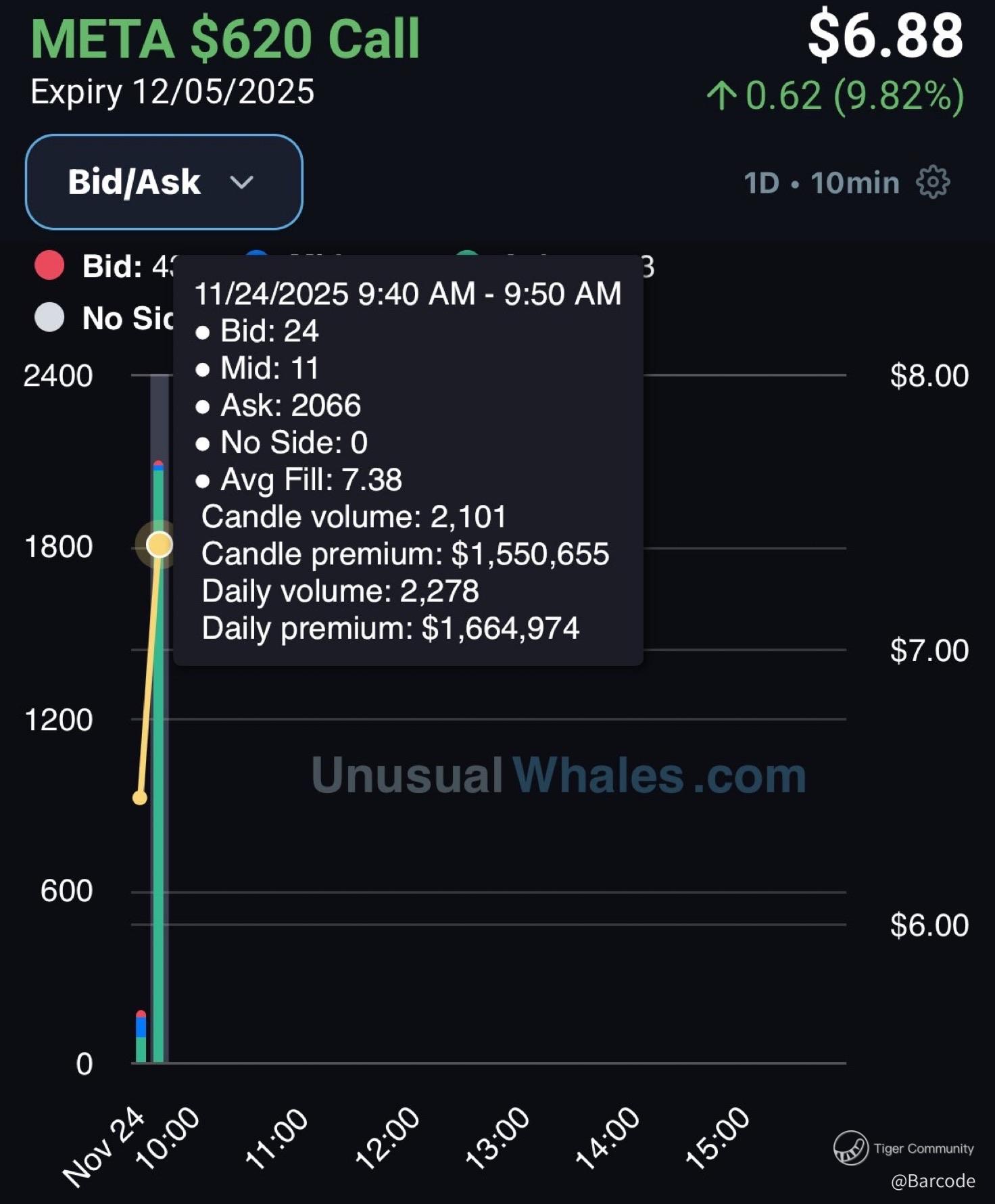 $26M calls smashed early. 16Jan 700 and 720 both over $3M BTO. Structure clean above 642.6 Daily Top. Mizuho reiterates Outperform and $815 PT, ~22% upside, estimating cuts could add ~$2 to 2026 EPS on top of $5.85 per share Reality Labs losses. Analysts are now paying for disciplined Gen AI investment not blank cheque spending.