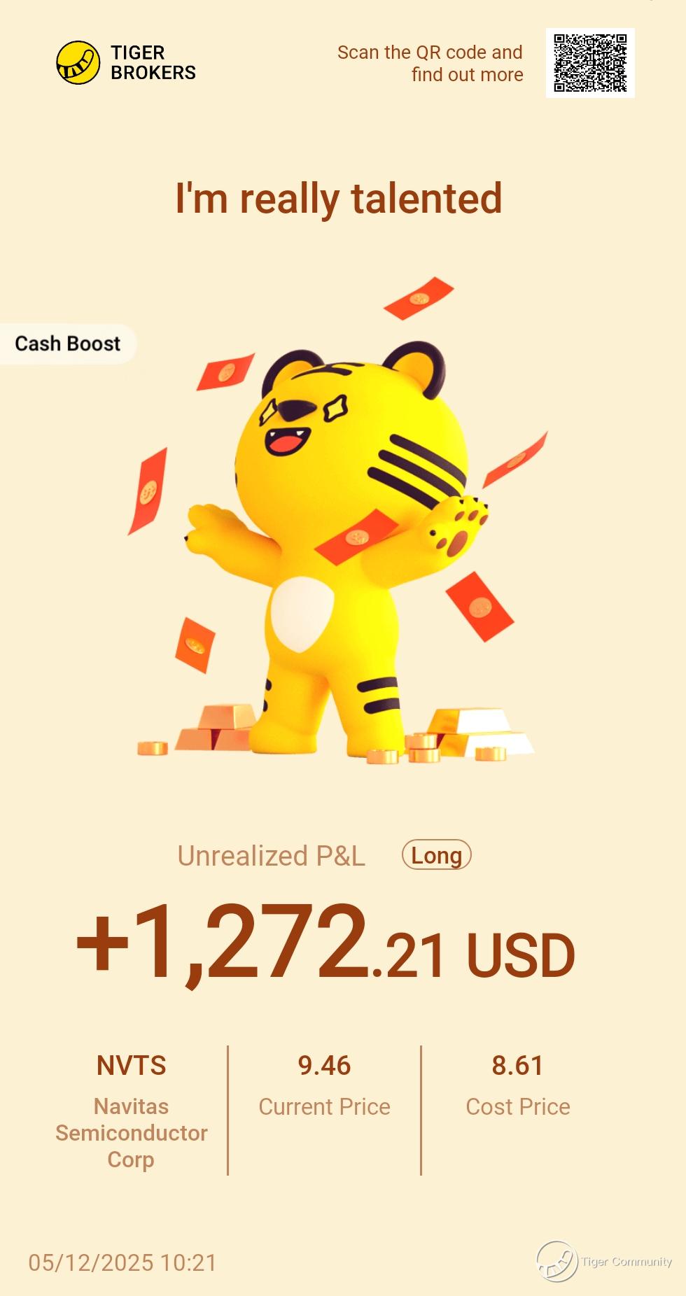 $Navitas Semiconductor Corp(NVTS)$ Solid gains taken, bullish outlook intact! GaN leader capitalizing on industry tailwinds with recent design wins. Holding for earnings acceleration and breakout potential.