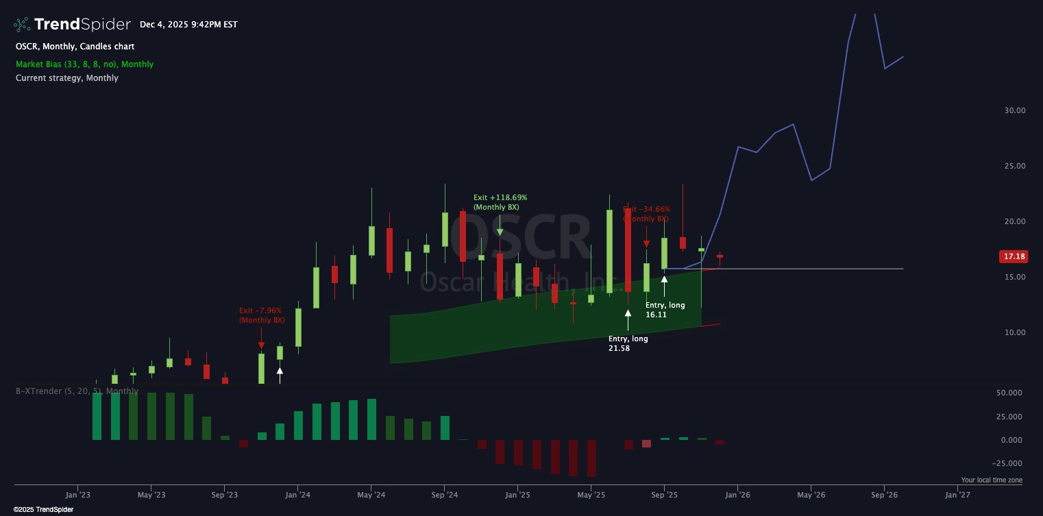 OSCR has played out almost perfectly and keeps squeezing inside the monthly market bias.