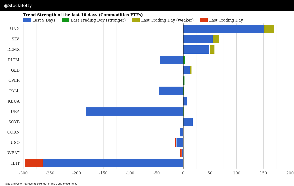 2.Commodities ETFs Strength Trend Meter Bar Chart