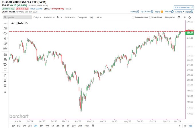 Small Cap Stocks $IWM equaled their all-time high of $252.77 today (also set back in October) 🚨 Incredible how that happens!!
