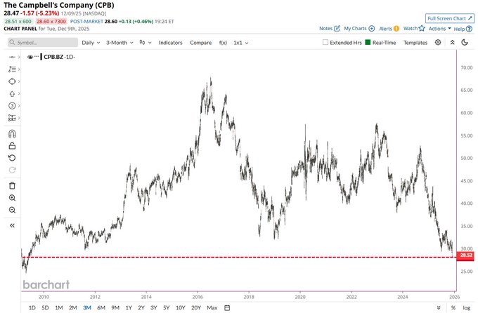 4.Campbell's Soup $Campbell Soup(CPB)$ plunges to its lowest price in more than 16 years 📉📉