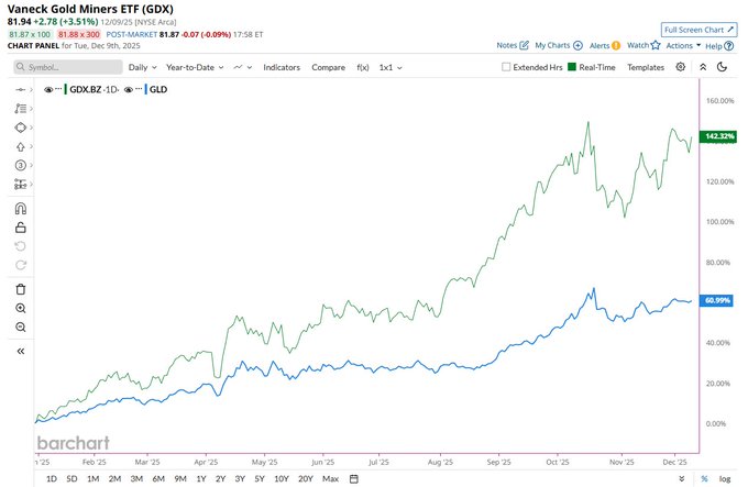 5.As good as Gold $SPDR Gold ETF(GLD)$ has done this year, Gold Miners $VanEck Gold Miners ETF(GDX)$ are outperforming by more than double 📈🤯👀