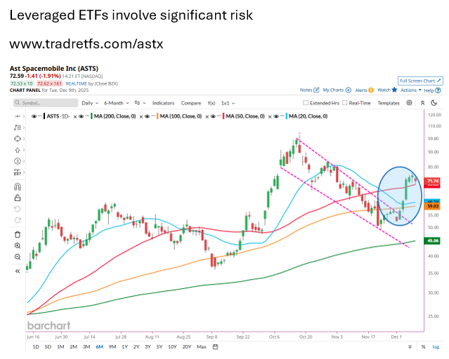 6.ASTS $AST SpaceMobile, Inc.(ASTS)$ breaking out above all major moving averages in anticipation of its next-generation satellite, BlueBird 6, expected to launch on Dec 15. For magnified exposure, consider the Tradr 2X Long ASTS Daily ETF $Tradr 2X Long ASTS Daily ETF(ASTX)$